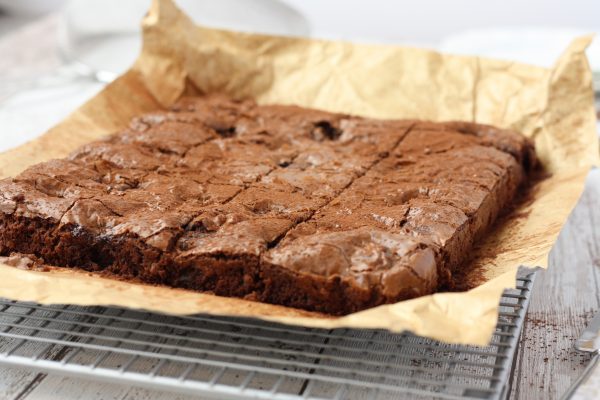 I make brownies in shallow roasters as they’re a stronger, more suitable tray than regular baking sheets. Apart from the fact that they usually come in a good brownie size, they’re thick and strong and give an nice even- gooey bake. These are also really non stick which is always a good thing!