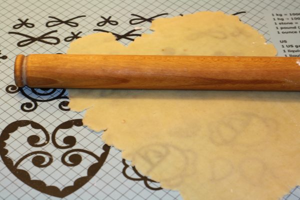 Line a baking sheet with grease proof paper and warm your oven up to 180ºC (160ºC fan oven) Knead and roll out the pasty into a large rectangle and set aside