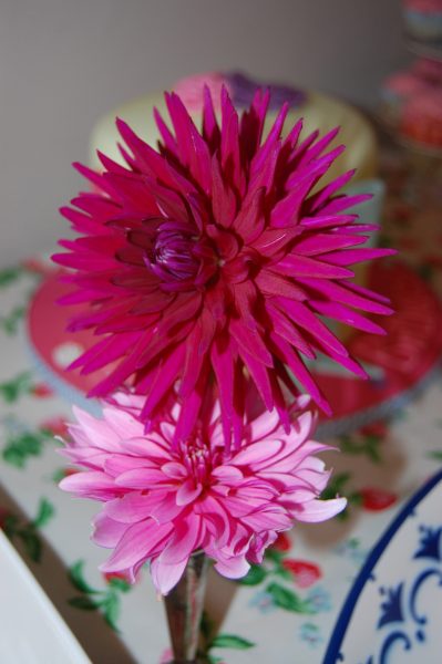 It had to have Dahlia’s on the top- obviously as that’s her daughters name. I made these with small circle cutters and then squidged each piece into place with my finger, adding more and more petals in a circle, layering up as I went. I wished that I had seen the flowers from Theoda’s garden (below) as I would have created this style flower instead. How beautiful are these? You can see why Dahlia was given such a beautiful name.