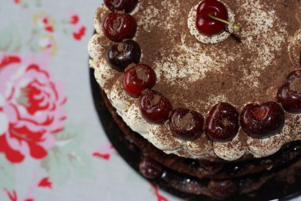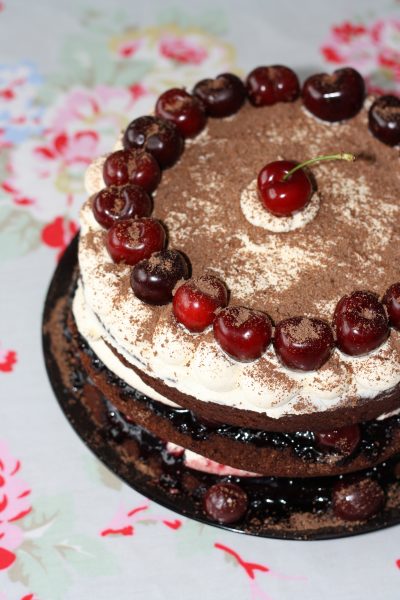 Tim’s birthday just so happened to co-inside with my car having a rather lengthy stay in the garage. So my quest to find kirsch, cherry brandy and make the cake, all within the school day was a bit of a challenge. I tried all the shops within walking distance and got hold of the brandy no problem but the Kirsch was going to have to be a bike ride.