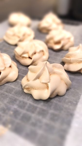 I didn’t expect to get that many meringues from just one egg but they yielded a healthy 16 mini piped domes. I was happy with that.